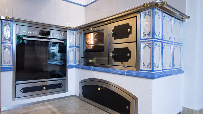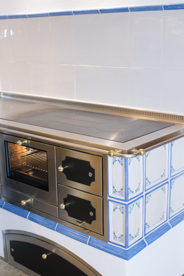 Dieser hochwertige Kombiherd vereint Elektro- und Holzherd in einer cleveren Ecklösung und wurde als echte Sonderanfertigung umgesetzt. Die edle Handkeramik verleiht dem Herd nicht nur eine zeitlose Optik, sondern sorgt auch für eine langlebige und pflegeleichte Oberfläche.