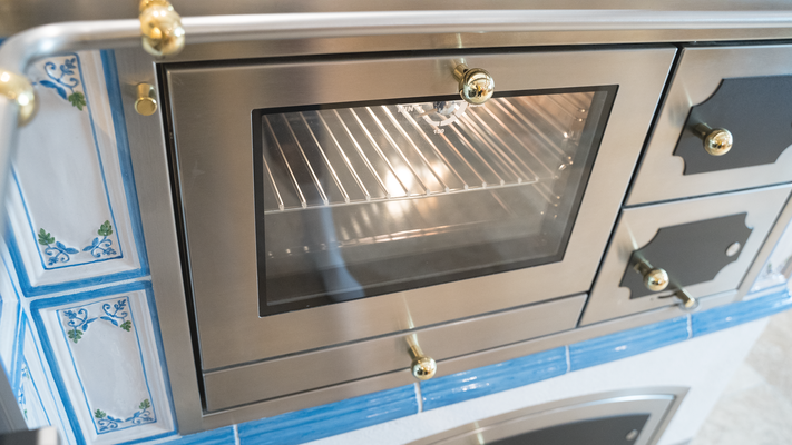 Dieser Herd verbindet traditionelle Bauweise mit dem Komfort moderner Technik: praktische Backfachauszüge erleichtern das Arbeiten, während die integrierte Backraumbeleuchtung für optimale Sicht sorgt. Ein wahres Meisterstück für alle, die gemütliche Wärme, handwerkliche Qualität und moderne Ausstattung in ihrer Küche vereinen möchten.