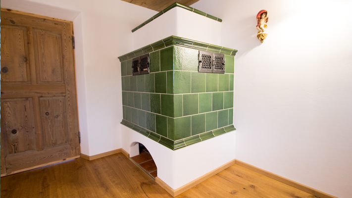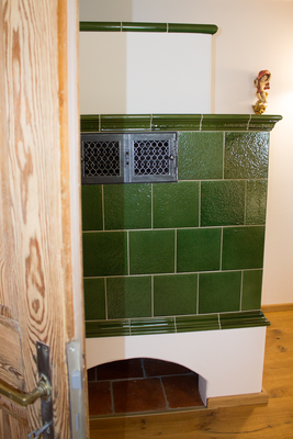 Der Putz wurde in einem traditionellen Handwerksverfahren aufgetragen, was dem Ofen einen unverwechselbaren, rustikalen Charakter verleiht. Das Zusammenspiel von moderner Heiztechnik und klassischer Bauweise macht diesen Ofen zu einem echten Highlight – sowohl in puncto Wärmeleistung als auch in ästhetischem Design.
