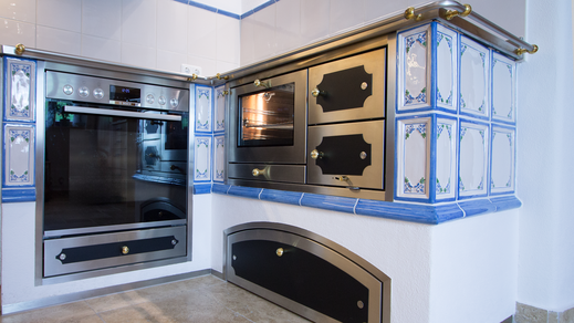 Dieser Aufsatzherd aus dem alpenländischen Raum kombiniert schnelle Herdplattenwärme mit langanhaltender Strahlungswärme durch den gemauerten Aufsatz. Flexibel nutzbar als Back- oder Warmhaltefach, überzeugt er durch praktische Vielseitigkeit. Die edle Tapetenkeramik mit handgemalter Goldverzierung macht ihn zum echten Schmuckstück im Zuhause.