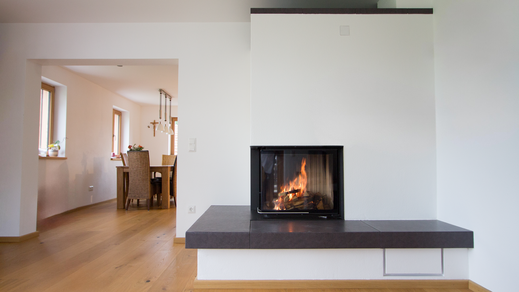 Dieser ehemalige offene Kamin wurde mit einer Kaminkassette mit integriertem Umluftgebläse aufgerüstet. Durch die Modernisierung wird ein höherer Wirkungsgrad erzeugt und dafür gesorgt, dass kein Rauch in den Raum eintreten kann.